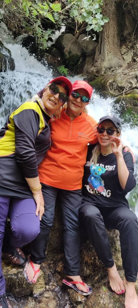 وپس از نوشیدن آب وتعارف تنقلات به یکدیگر ودیدن اینهمه زیبایی بکر طبیعت وگرفتن عکس های یادگاری حرکت را ادامه که در ارتفاع کوه رودخانه دم اسب در ته دره نمایان شد و نغمه دلنواز رودخانه زیبایی وسرسبزی طبیعت و آوای پرندگان و دیدن درختان جنگلی تلفیقی زیبا از معماری ،هنر و موسیقی روح نواز درهوای نسبتا گرم میانروز را برای همنوردان بوجود آورده بود که همه شکر گذار این همه بزرگی ،عظمت ولطف و محبت خداوند در دل و در زبان بودند .در ساعتی بعد صدای آبشار خروشان دم اسب به گوش میرسید با دیدن درختان زیبای بید ،انار ،انگور و …اطراف