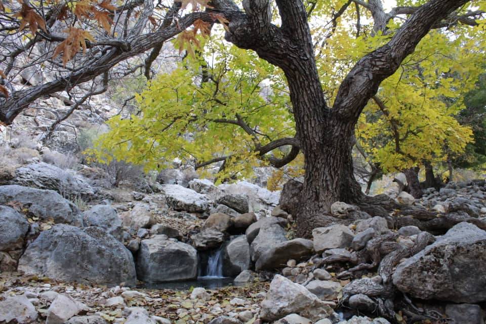 سپس پشت سر راهنما از دره ای پر درخت وپر سنگلاخ که در جایجای آن چشمه ای می جوشید و آب در نقاطی آشکار و پنهان جاری بود ، صعود را ادامه دادیم ، حدود یک ساعت و نیم به محل چشمه ای رسیدیم که در این محل جوضچه ای سیمانی که آب چشمه ازطریق لوله پلیکا به ان منتقل و از آن به حوضچه های کوچکتری که برای آبشخور دام های عشایر وروستاهای اطراف درست شده بود منتقل میشد و اکثر طبیعت گردان در آنجا اتراق می کنند . تعدادی از همنوردان در کنار چشمه ماندند و تعدادی دیگر مسیر صعود را ادامه دادند .