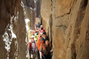 . با ادامه پشت سر راهنما وارد شکاف طبیعی وگذرگاه باریکی که ابتدای آن به صورت یک غار نمایان است وباحمایت آقایان شاکر ، بینا زاده و موذن از راه سخت و باریک اول گذرگاه عبور کرده ، وارد راهرو باریک شدیم طول راهرو که شاید کمتر از ۱۰۰متر باشد طی شد .