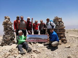 با برنامه ریزی انجام شده ،تیمی متشکل از ده نفر از همنوردان باشگاه کوهنوردی کوه سرخ گلستان شیرازبه سرپرستی اقای مجتبی صدق امیز در ساعت ۰۵:۱۵ صبح روز جمعه مورخ ۹۹/۳/۳۰ شیراز را به مقصد سپیدان ترک نمود، ساعت ۰۷:۱۵ دقیقه صبح بعد از گذشتن از شهر اردکان به گردنه شکرک رسیدیم که با ملحق شدن دو نفر دیگر از همنوردان که با اتومبیل شخصی آمدند پیمایش را آغاز کردیم. پس از حدود یک ساعت پیمایش ساعت ۸ کنار چشمه ای ،درمسیرو پس از صرف صبحانه ادامه مسیر داده . بعد از گذشت یک ساعت و نیم به برم رسیدیم، وبا استراحتی کوتاه از آن جا مستقیم عازم قله شدیم. با نظرخواهی که از دوستان شد باتوجه به گرمی هوا وطولانی بودن مسیر یال تصمیم بر این شد که از مسیر زیر قله صعود کنیم قابل ذکر است در این مسیر به دلیل ریزالی بودن آن بایستی با احتیاط بیشتری پیمایش انجام شود